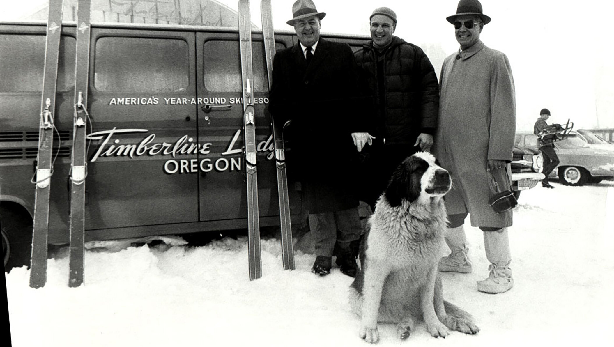 St. Bernards have long been a part of Timberline’s tradition. The first Timberline mascots were reportedly Hansel and Gretel in the very early days of lodge operations, followed by Lady and Bruel. In the 1950s, when the Kohnstamm family took over lodge operations, the mascots were briefly replaced by Huskies, starting with Mac, who belonged to an employee. Due to popular demand, the Kohnstamms soon reintroduced St. Bernards, and since the early 1960s the lodge has had mascots named Heidi and Bruno.
